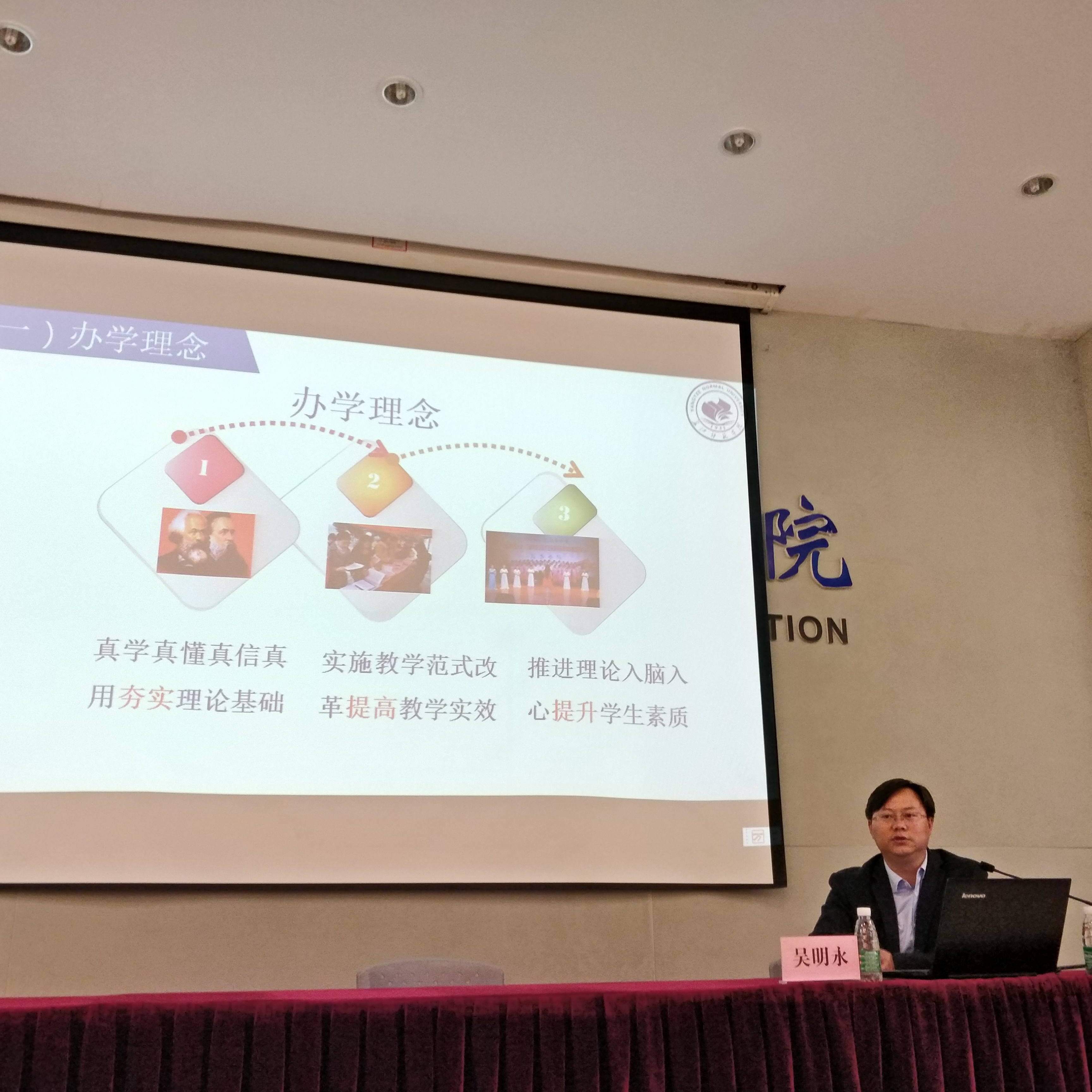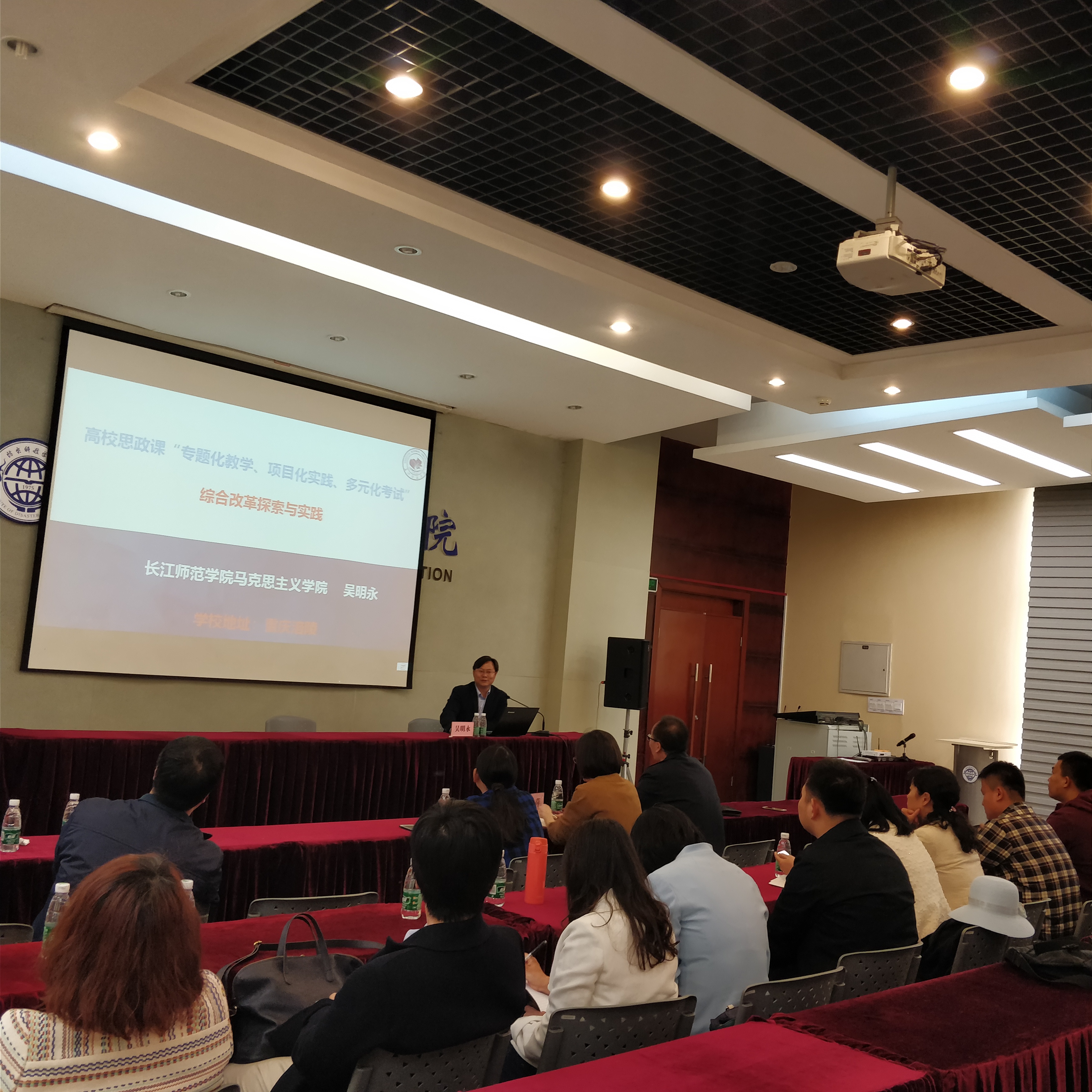 2018年4月24日,思政部邀请长江师范qy球友会官网qy球友会官网院长、法学博士、硕士生导师、吴明永教授为qy球友会官网思政课专兼职教师在图书馆多功能厅做关于“高校思政课综合改革探索与实践暨马克思诞辰200周年”的专题报告。报告在总结分析当前高校思政课教学教改存在的主要问题的基础上,提出了系统、科学、综合改革的必要性及基本理念、基本思路,并具体详尽地介绍了长江师范qy球友会官网思政课“专题化教学、项目化实践、多元化考试”综合改革的实施情况和良好的改革成效及社会影响。之后,吴教授还与老师们展开了“纪念马克思主义诞辰200周年”的专题研讨会,就研读马克思主义经典著作,夯实思想课教师的理论功底,做到真学真懂真信真用,是保障思政课教学质量的最关键因素等问题达到一致认识,并就如何促进老师学习马克思主义经典著作、坚定马克思主义立场观点方法、提高马克思主义理论素养提出具体建议。吴教授的讲座对qy球友会官网思政课教师解放思想、转换理念、加强学习,进一步推进思政课教学教改,提升教学质量启发很大。